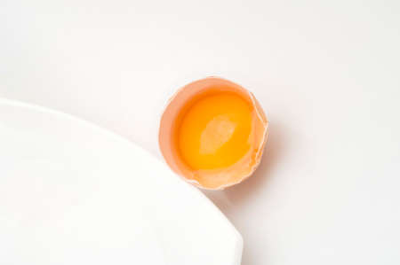 broken egg on white background
