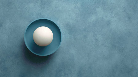 A chicken egg on a bright blue background. One object on the surface.