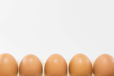 Vertical shot of white eggs row.