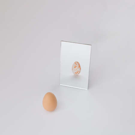 Simple as White egg over desk with reflection and shadow