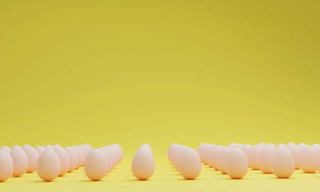 3d rendering of a row of white eggs on a pink background