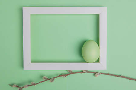 on a green background one easter eggs in a white frame