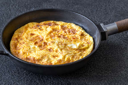 Frittata with vegetables on a frying pan