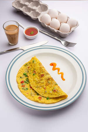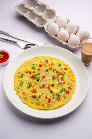 Indian Spiced Masala Omelet filled with fresh vegetable, healthy meal