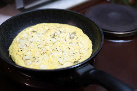Omelette with potato and feta cheese.
