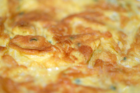 Omelette food background. Close up, selective focus.