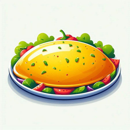 Illustration of a fresh tortilla on a plate with fresh vegetables