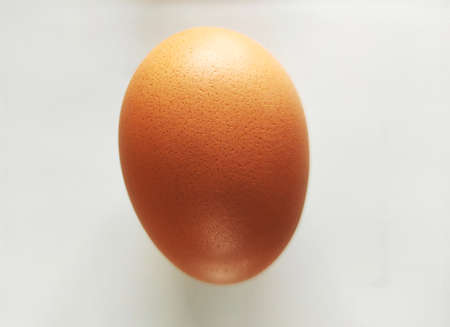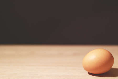 One brown chicken egg in cardboard container. Fresh raw organic chicken egg, close up