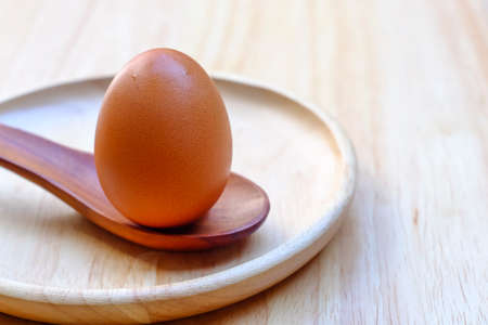 Boiled eggs. Boiled eggs in plate on wooden table.