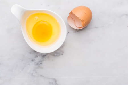 Close up of fresh egg yolk in a bowl with use of selective focus.