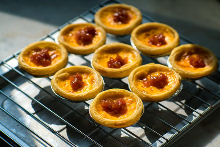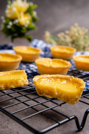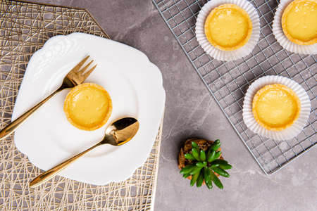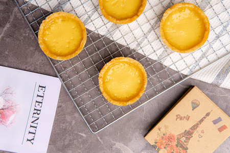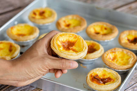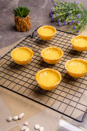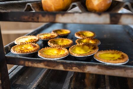 dessert egg tart or Portugal egg tart sweet custard cream on tray