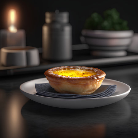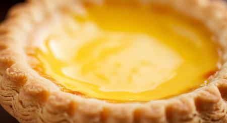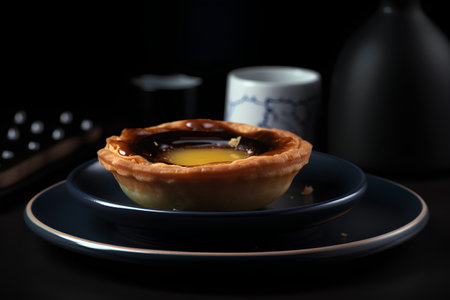 Close-up of Pastel de nata (Portuguese: pasteis de nata), a famous Portuguese egg custard tart pastry