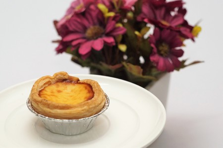 Delicious Portuguese egg custard tart puff pastry, Pastel de nata in flower shape.