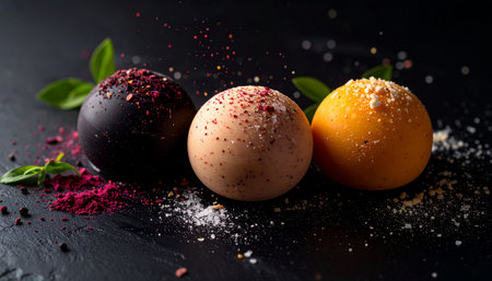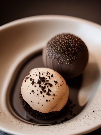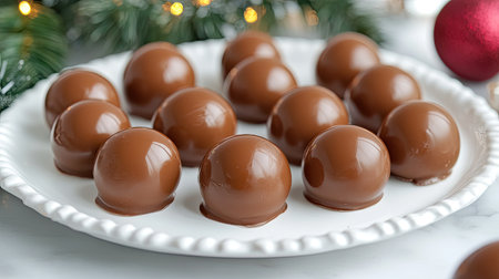 A tempting platter of glossy chocolate truffles perfect for festive celebrations. These rich, bite-sized desserts add a touch of indulgence to any gathering.
