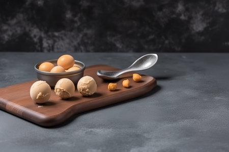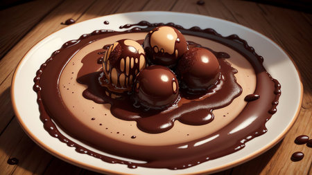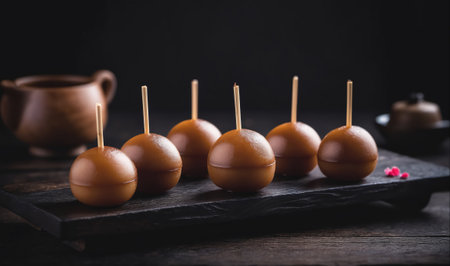 Traditional Brazilian Brigadeiros - About the surface of the wood, generative AI