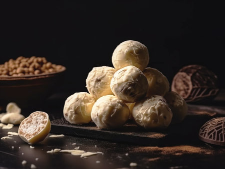 truffles of white chocolate isolated on dark background