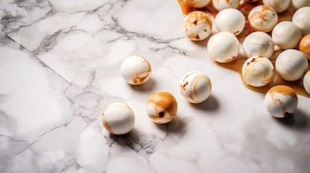White chocolate candies on a marble background. Selective focus.