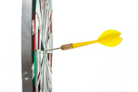 dart board has dart arrow throw hitting the center of a shooting target for business targeting and winning goals business concepts.
