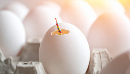A miniature swimmer breaks free from the confines of an eggshell, poised to dive into a world of new possibilities.