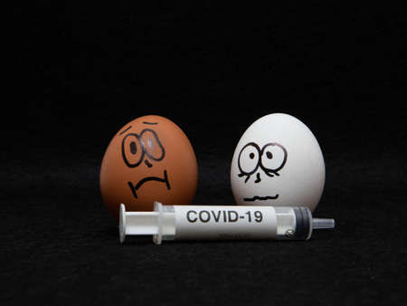 covid-19 and coronavirus eggs drawn frightened faces alcohol syringe