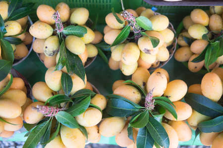 Yellow Sapodilla fruit for sale at the market in Thailand.