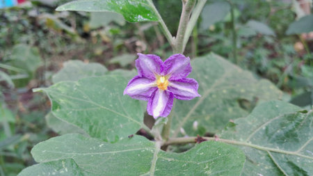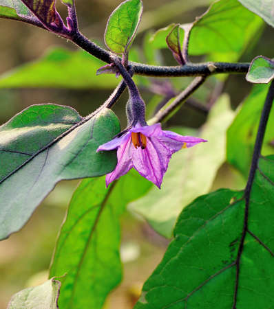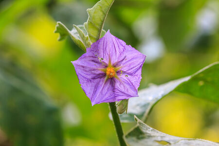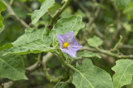 Eggplant blossom in the garden. (Scientific name: Solanum melongena)