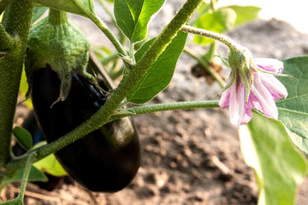 Eggplant cultivation in the vegetable garden. Solanaceae summer vegetable native to India. It can be harvested in 15-20 days after flowering.