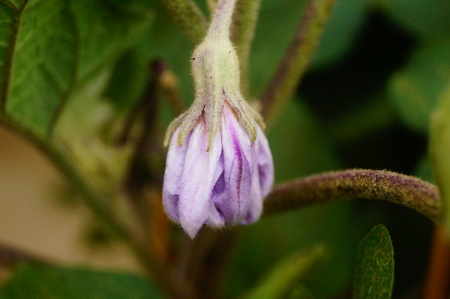 The brinjal eggplant flower is a delicate. Measuring 2 to 3 cm in diameter, its soft, velvety petals appear singly or in small clusters