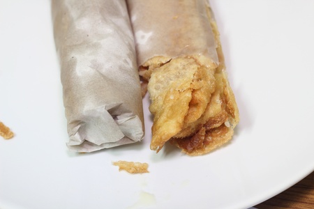 Fried spring rolls or popia or lumpia in white plate