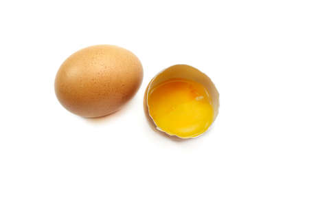 broken egg on white background