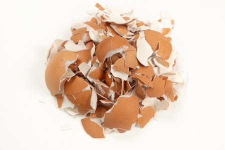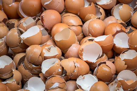 Full frame shot of crushed chicken eggshells. This organic waste is rich in calcium and other components that are essential for plant growth.