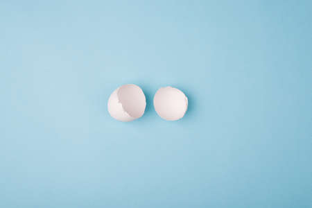 Cracked eggshell on a blue background