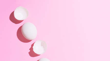 Creative happy easter, food card, egg white shell on a pink background.