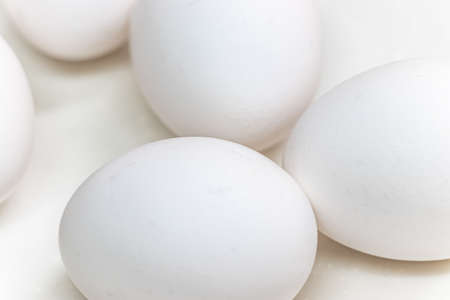 background of white large chicken eggs closeup