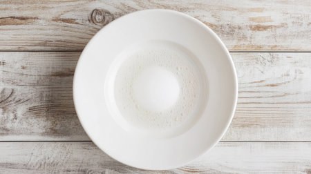 A simple yet elegant image showcasing a white egg in a bowl surrounded by foam, perfect for culinary presentations and food-related themes.