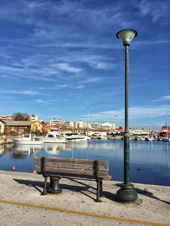 Sunny and summer morning in the port of the old city, Rethymnon, Greece
