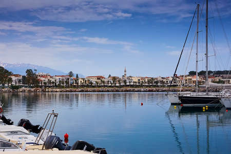 RETHYMNO, THE CRETE ISLAND, GREECE - MAY 30, 2019: Beautiful yachts in the harbour of Rethymno, the Crete island, Greece.
