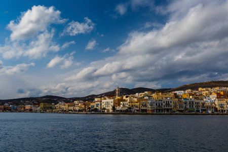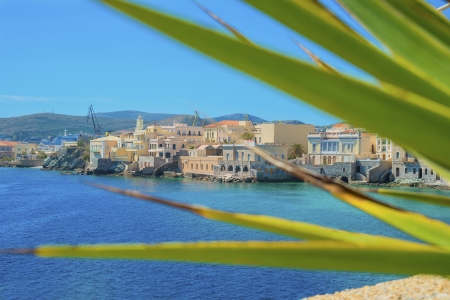 Greece Syros island artistic view of main capitol, also known as little venice at summer time, Syros is located in Cyclades