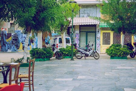 City Athens, Greek Republic. There is a scooters on the street. Around city streets and houses.16. Sep.