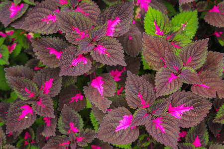 Beautiful leaves of Coleus plant with vibrant color. Natural color pattern background