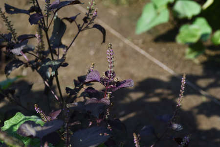 Perilla is growing in the garden. Beefsteak plant in Korea