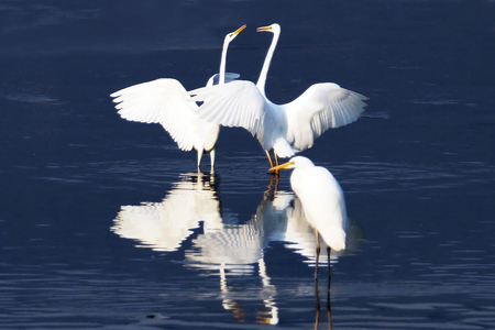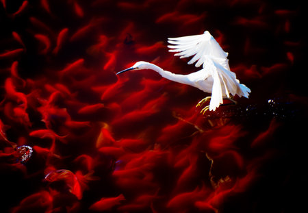 Egretta garzetta it fishes in shallow water and uses its wings to catch fish, the best photo.