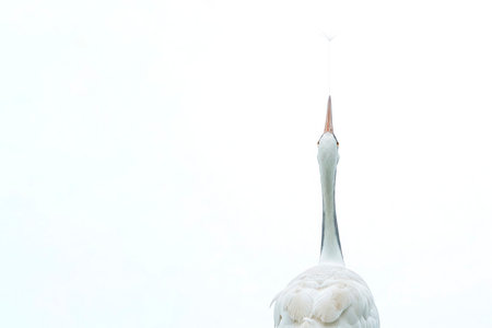 Featuring a white longtailed crane flies in the sky, high quality, high resolution