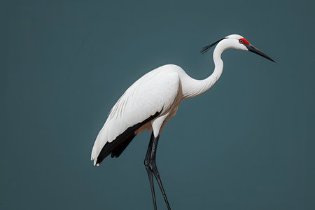timeless crane photographed in a standing pose in a reedy marsh, in a classic wildlife photography style, with soft gray tones, early morning light, high resolution