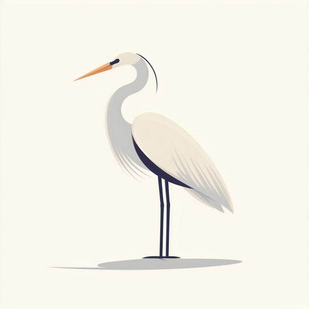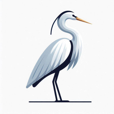 White heron on a white background. Vector illustration in flat style.