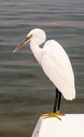 Egret standing on the edge of the pier