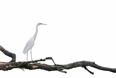 White Egret resting on an old tree stump