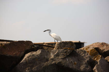 Close-up of a Beautiful Little Egret, Egretta Garzetta, Seascape, Sicily, Italy, Europe