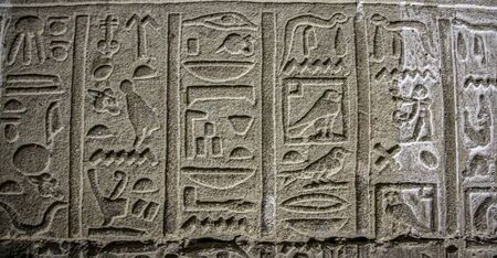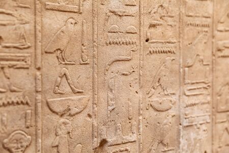 Egyptian hieroglyphs on the wall of the egyptian temple