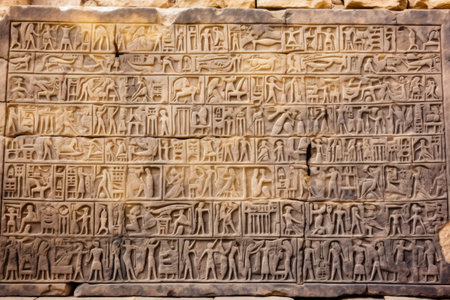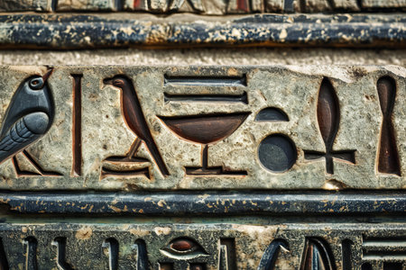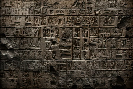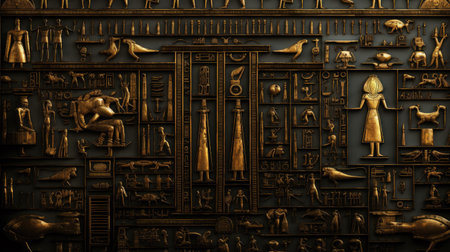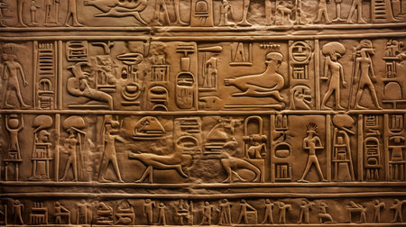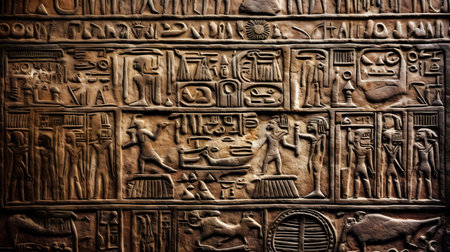 ancient egyptian hieroglyphs on stone wall, created with generative ai